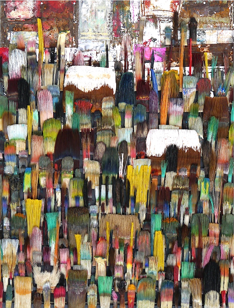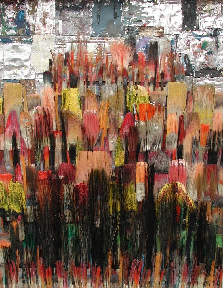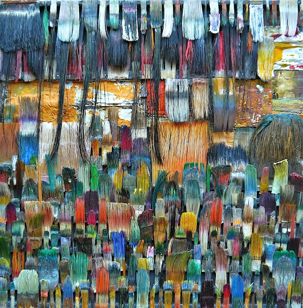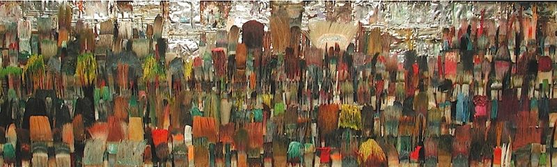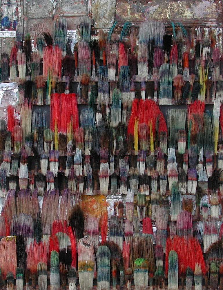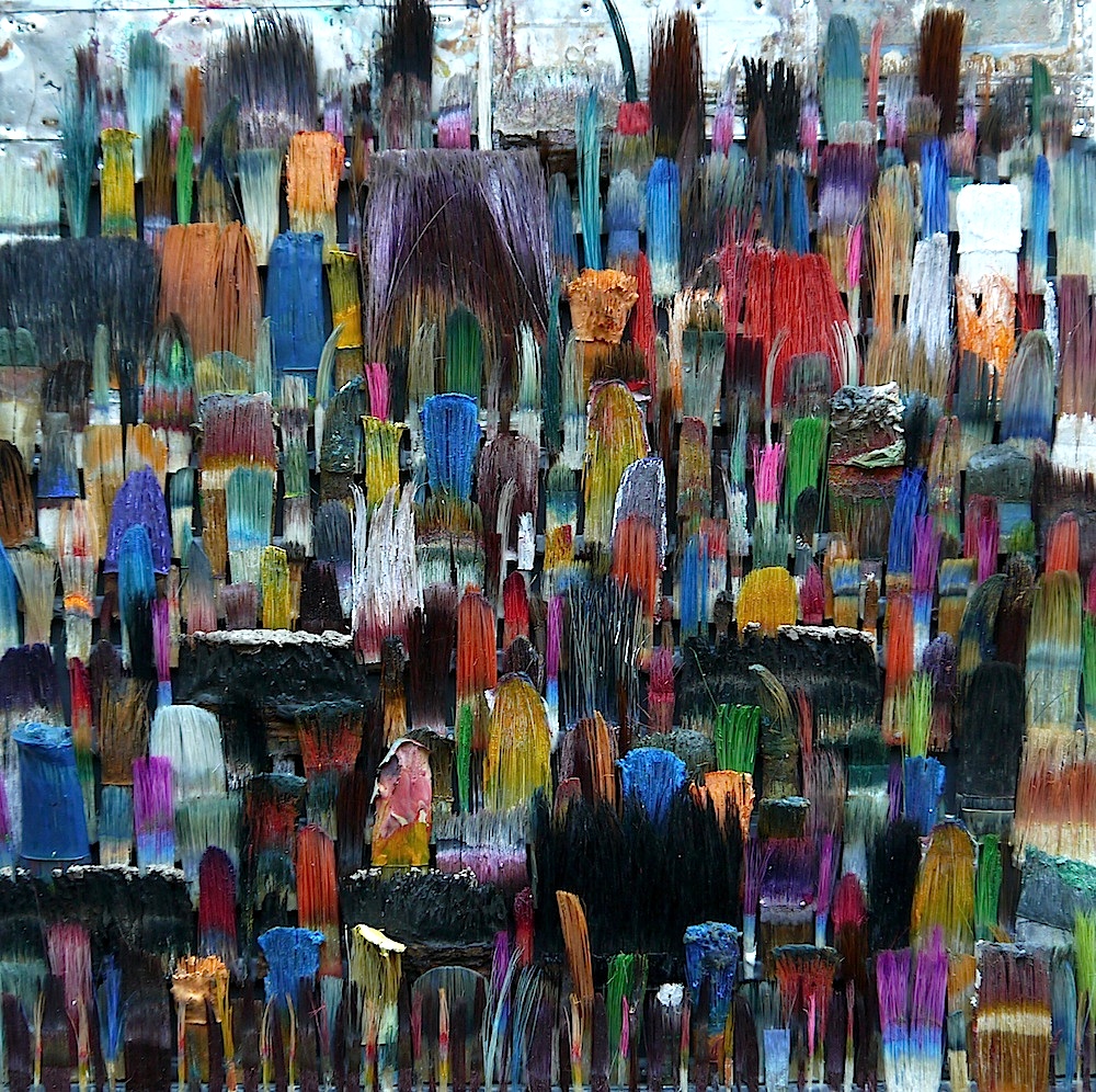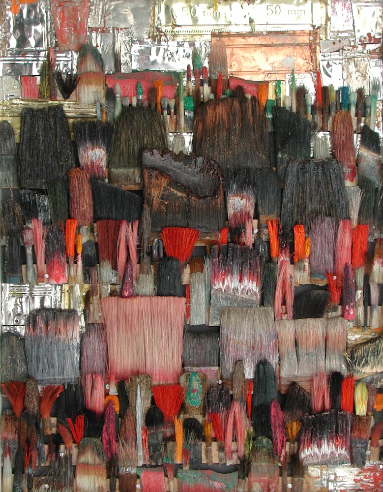 Seit 1994 "malt" Jo Teh mit Pinseln. Pinsel , u.a. von Künstlerkollegensind das Material des Künstlers. Er zerlegt sie in seine Einzelteile und komponiert die farbigen Borsten zu einzigartigen Panoramabildern , die aus der Ferne gleich einer abstrakten Farbfeldmalerei anmuten . Die Metalle der Pinselzwingen bilden oftmals einen glänzenden Hintergrund und erinnern an die kostbaren Silber und Goldauflagen mittelalterlicher Tafelmalerei. Pinsel und ihre Fragmente sind aber auch die Grundlage von -zum Teil Raumgreifenden Objekten. Der enge Zusammmen-schluss von Material, stofflicher Qualität und Form mit der künstlerischen Idee zeichnet die bildplastischen Arbeiten und Installationen aus. Jo Teh interpretiert die vielschichtigen Assoziationen, die mit dem Medium Pinsel verbunden sind, neu. Dabei bleibt das Material und der Charakter der Ausgangsobjekts grundsätzlich unangetasted. Und doch weiß der Künstler das Material so zu bearbeiten, dass das Ergebnis weit über das ursprüngliche Objekt hinausweist. Der Pinsel, der allgemein zur Schaffung der zweidimensionalen Malerei dient, wird selbst zum Bildträger und zum dreidimensionalen Werk. Die eigenwilligen und vielschichtigen " Pinselobjekte " verdichten sich zu originären geistigen und energiegeladenen Materialbildern und Installationen, welche die Grenzen zwischen Malerei und Skulptur hinterfragen und erweitern. Der Künstler nimmt sich in seinem plastischen Schaffen die Freiheit heraus vollkommen offen mit mit dem wichtigsten Werkzeug der Malerei umzugehen. Jo Teh transformiert die Pinsel und setzt sie in einen Spannungsbogen der Kunst und Alltagskultur auf lyrische Art zu verbinden weiß. Die Arbeiten des Künstlers, der in seinen früheren Berufsjahren als Malermeister gearbeitet hat, sind untrennbar mit seiner Biografie verbunden. "1994 habe ich aufgehört herkömmlich zu malen, die Leinwand war grundiert, doch meine Hände weigerten sich. Auf der Suche nach neuen Möglichkeiten, habe ich den Pinsel nicht aus der Hand gegeben, stattdessen habe ich ihn zerlegt und in sein Inneres geschaut." ( Jo Teh )Jo Teh ( geb.1955 in Wachtendonk / Niederrhein ) lebt und arbeitet in Köln . Seit 1995 arbeitet er experimentell und prozesshaft mit Pinseln. 2006 entstand das erste "Panorama". 1998 fand die erste größere Einzelausstellung unter dem Titel " Pinseltransformationen " im " Raum im Duhr " in Langenberg statt. Dr. Gudrun Pamme - Vogelsang