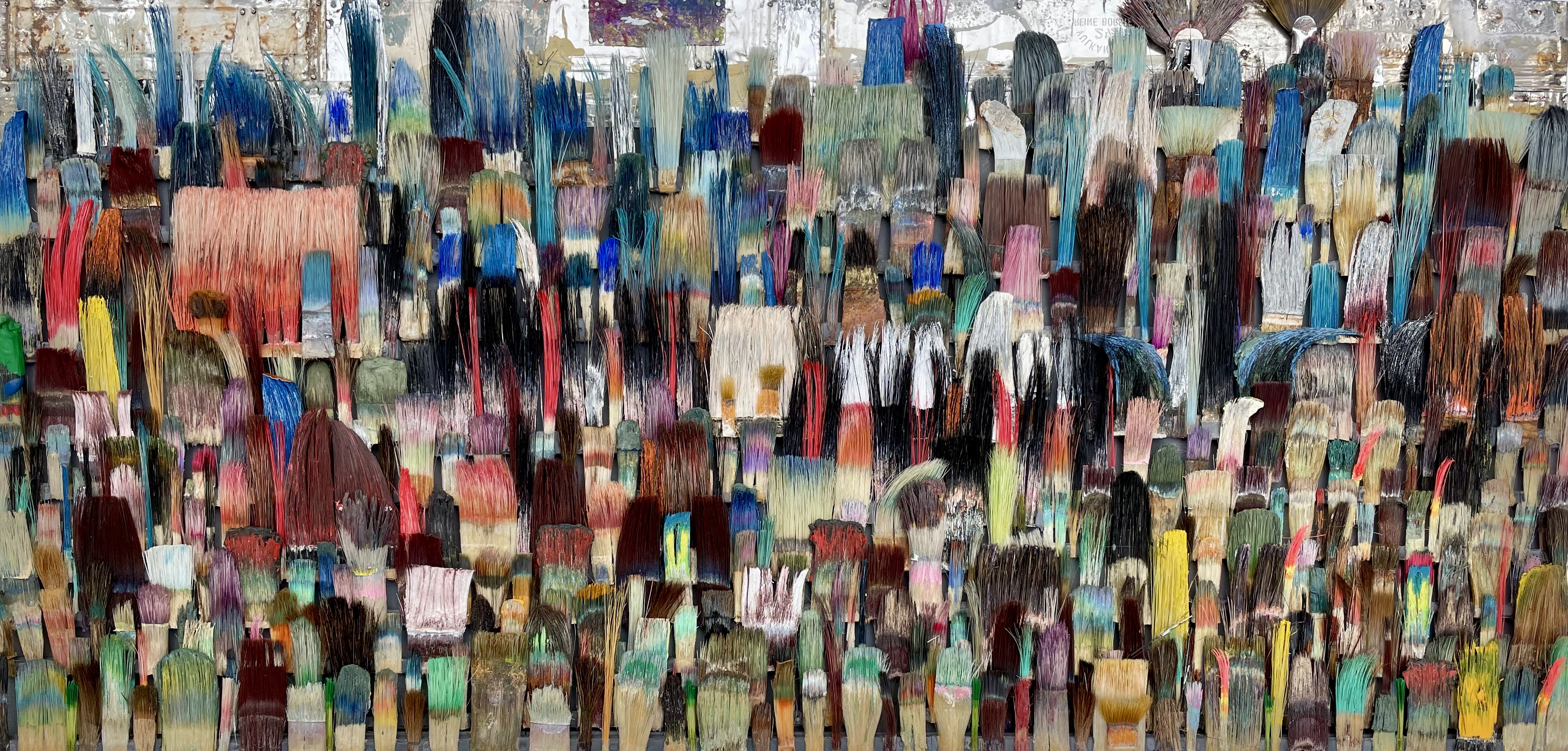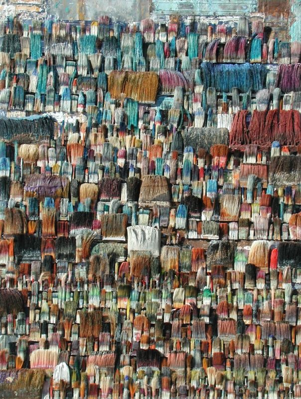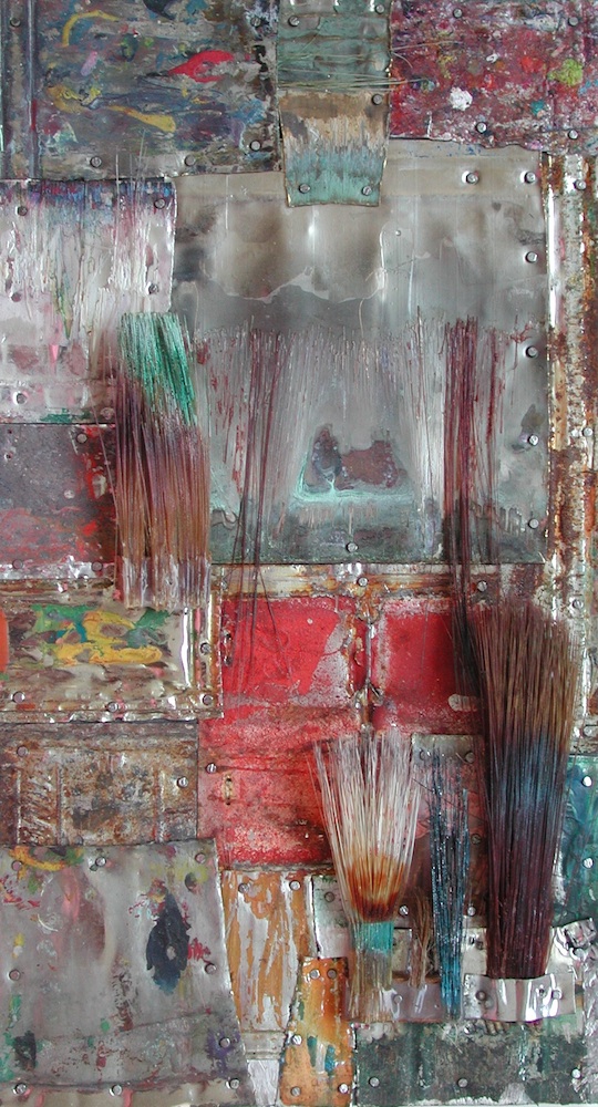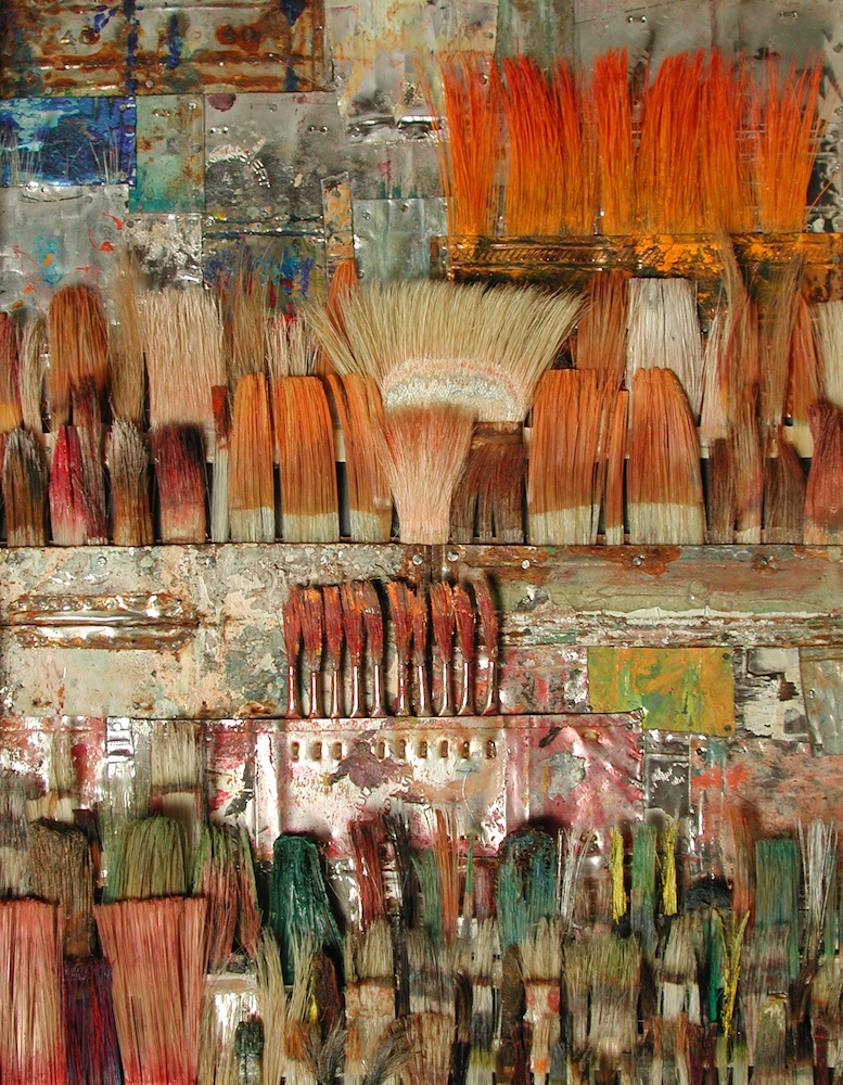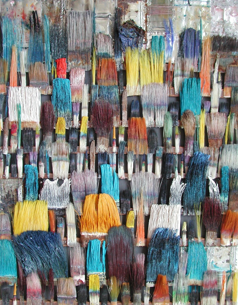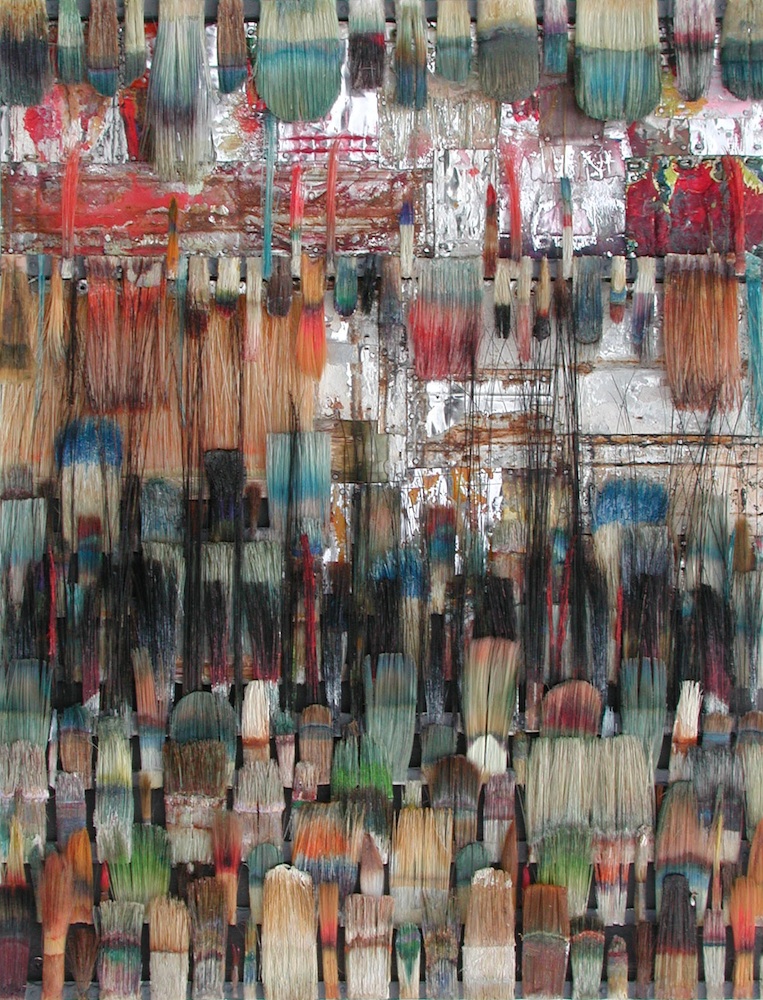 Seit 1994 "malt" Jo Teh mit Pinseln. Pinsel , u.a. von Künstlerkollegensind das Material des Künstlers. Er zerlegt sie in seine Einzelteile und komponiert die farbigen Borsten zu einzigartigen Panoramabildern , die aus der Ferne gleich einer abstrakten Farbfeldmalerei anmuten . Die Metalle der Pinselzwingen bilden oftmals einen glänzenden Hintergrund und erinnern an die kostbaren Silber und Goldauflagen mittelalterlicher Tafelmalerei. Pinsel und ihre Fragmente sind aber auch die Grundlage von -zum Teil Raumgreifenden Objekten. Der enge Zusammmen-schluss von Material, stofflicher Qualität und Form mit der künstlerischen Idee zeichnet die bildplastischen Arbeiten und Installationen aus. Jo Teh interpretiert die vielschichtigen Assoziationen, die mit dem Medium Pinsel verbunden sind, neu. Dabei bleibt das Material und der Charakter der Ausgangsobjekts grundsätzlich unangetasted. Und doch weiß der Künstler das Material so zu bearbeiten, dass das Ergebnis weit über das ursprüngliche Objekt hinausweist. Der Pinsel, der allgemein zur Schaffung der zweidimensionalen Malerei dient, wird selbst zum Bildträger und zum dreidimensionalen Werk. Die eigenwilligen und vielschichtigen " Pinselobjekte " verdichten sich zu originären geistigen und energiegeladenen Materialbildern und Installationen, welche die Grenzen zwischen Malerei und Skulptur hinterfragen und erweitern. Der Künstler nimmt sich in seinem plastischen Schaffen die Freiheit heraus vollkommen offen mit mit dem wichtigsten Werkzeug der Malerei umzugehen. Jo Teh transformiert die Pinsel und setzt sie in einen Spannungsbogen der Kunst und Alltagskultur auf lyrische Art zu verbinden weiß. Die Arbeiten des Künstlers, der in seinen früheren Berufsjahren als Malermeister gearbeitet hat, sind untrennbar mit seiner Biografie verbunden. "1994 habe ich aufgehört herkömmlich zu malen, die Leinwand war grundiert, doch meine Hände weigerten sich. Auf der Suche nach neuen Möglichkeiten, habe ich den Pinsel nicht aus der Hand gegeben, stattdessen habe ich ihn zerlegt und in sein Inneres geschaut." ( Jo Teh )Jo Teh ( geb.1955 in Wachtendonk / Niederrhein ) lebt und arbeitet in Köln . Seit 1995 arbeitet er experimentell und prozesshaft mit Pinseln. 2006 entstand das erste "Panorama". 1998 fand die erste größere Einzelausstellung unter dem Titel " Pinseltransformationen " im " Raum im Duhr " in Langenberg statt. Dr. Gudrun Pamme - Vogelsang
