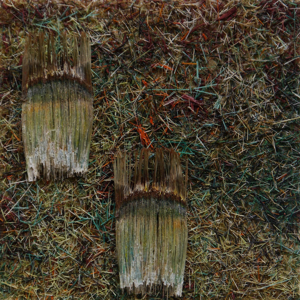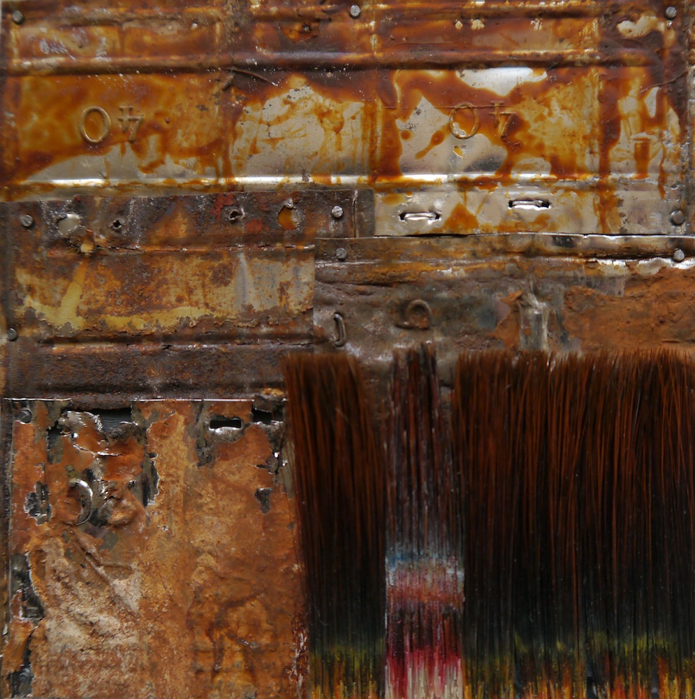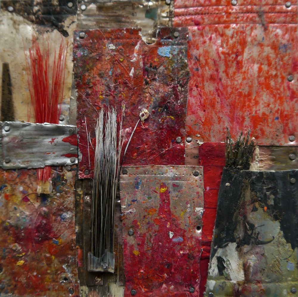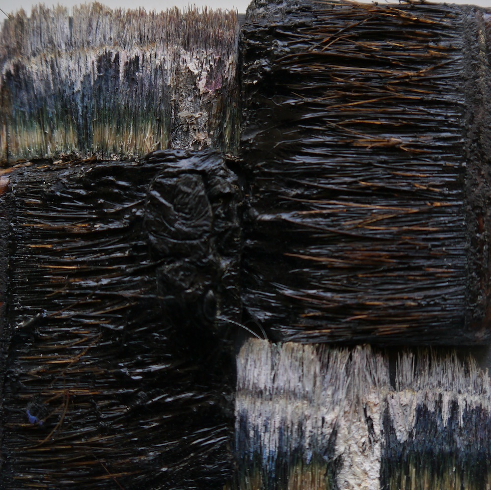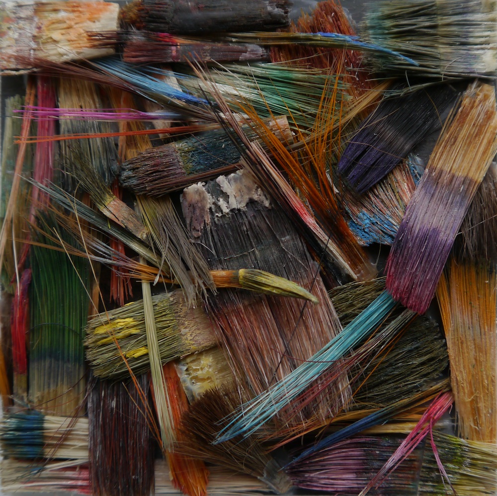 20 x 20 cm - Pinselfragmente, Holz, Glas, Aluminiumrahmen