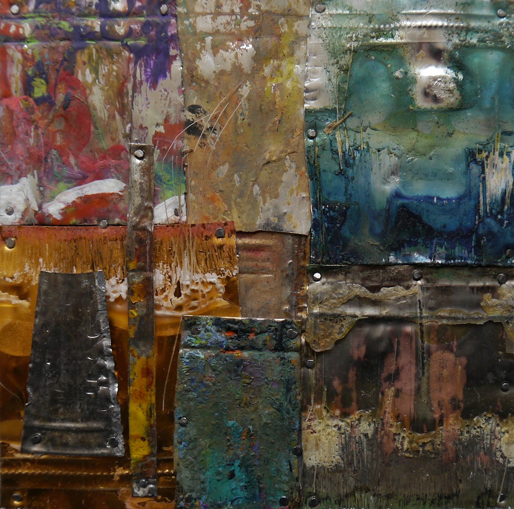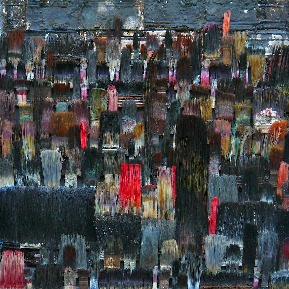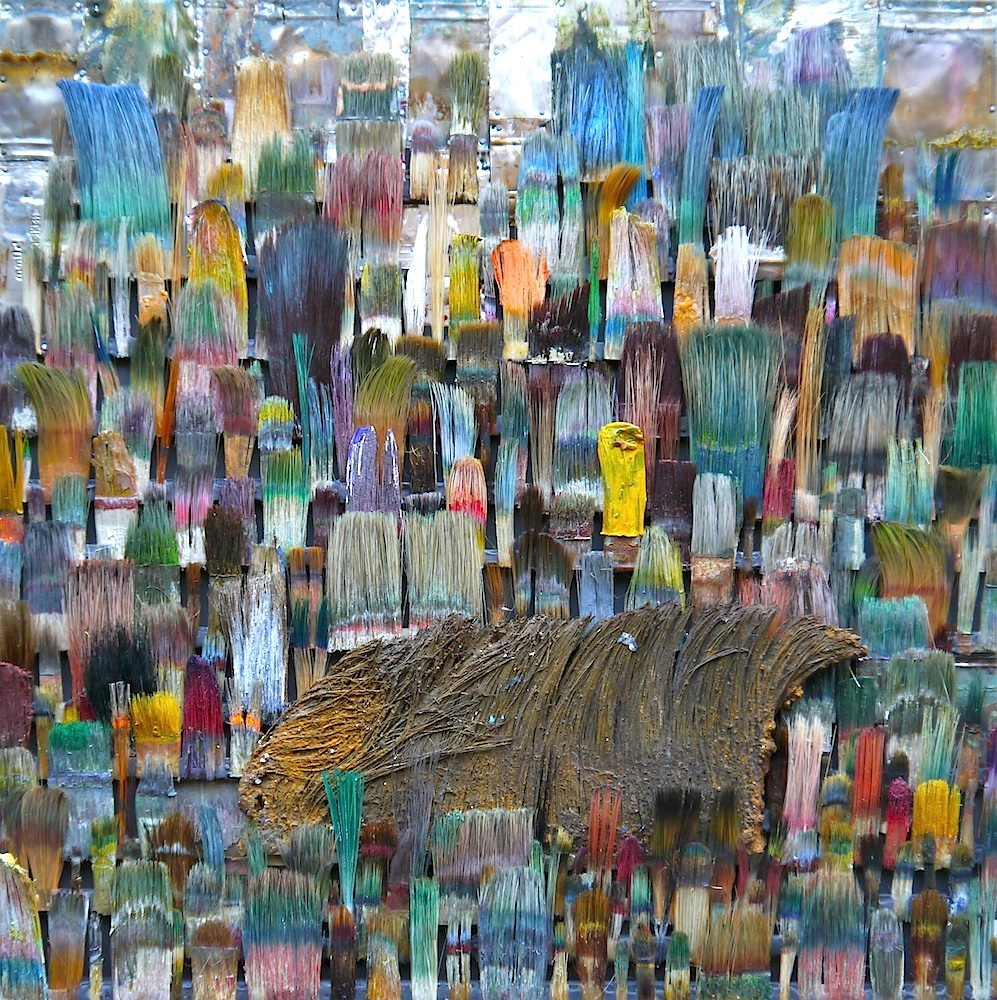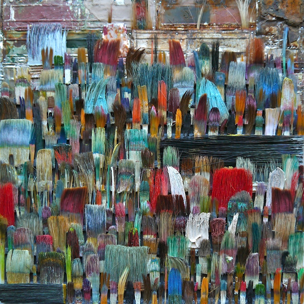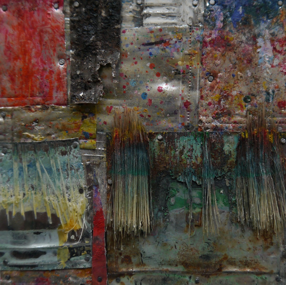 20 x 20 cm - Pinselfragmente, Holz, Glas, Aluminiumrahmen