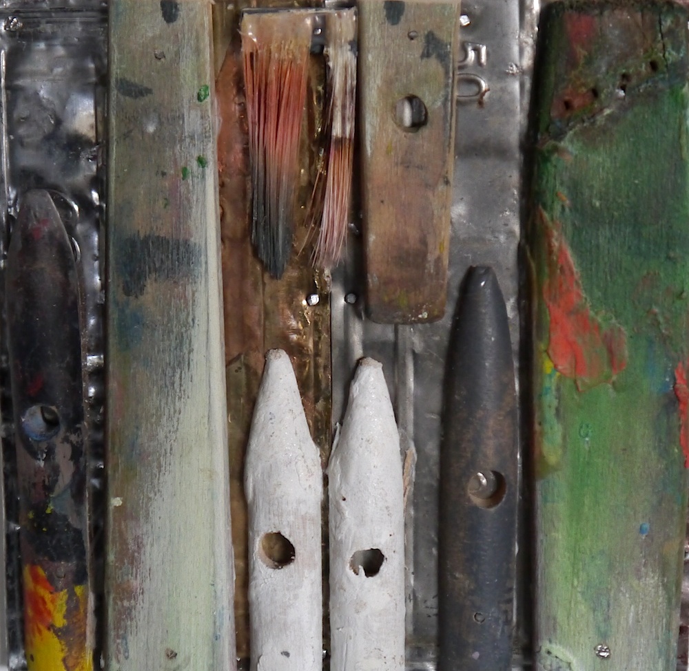 47 x 39 cm - Pinselfragmente, Holz, Acrylglas, Aluminiumrahmen