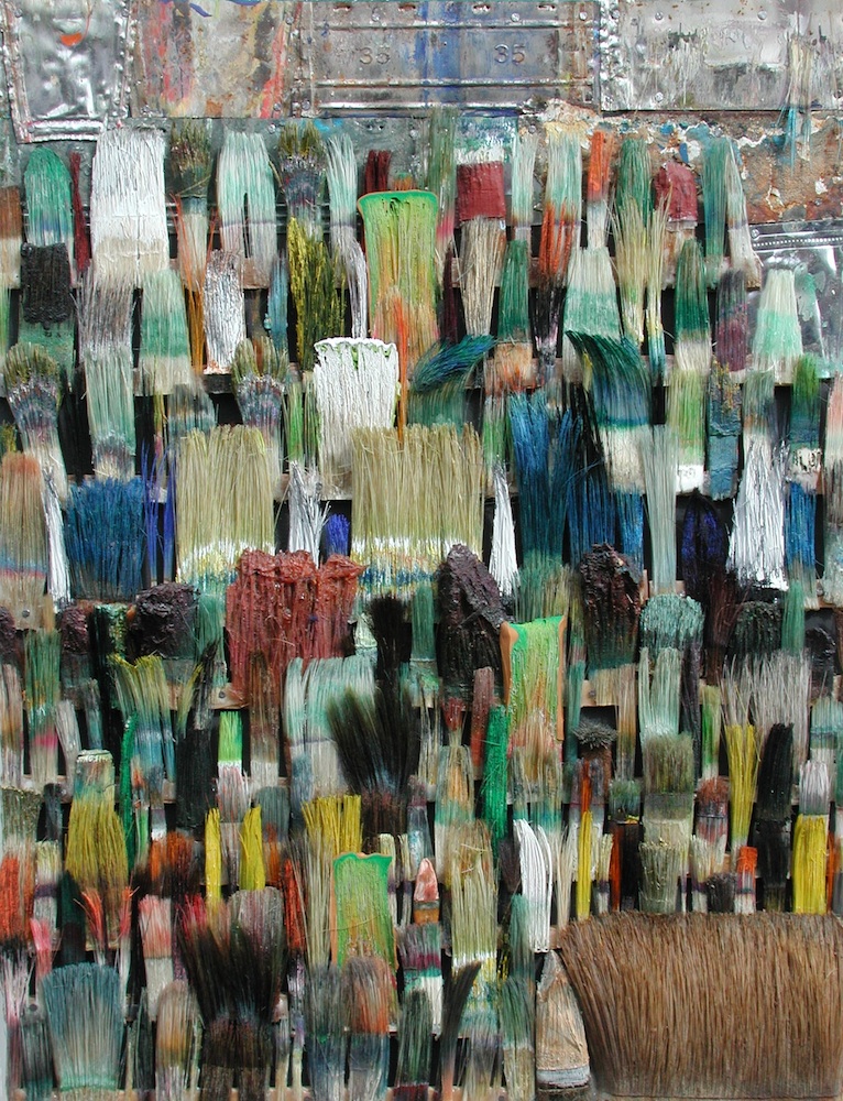 104x84 cm - Pinselfragmente, Holz, Glas, Aluminiumrahmen